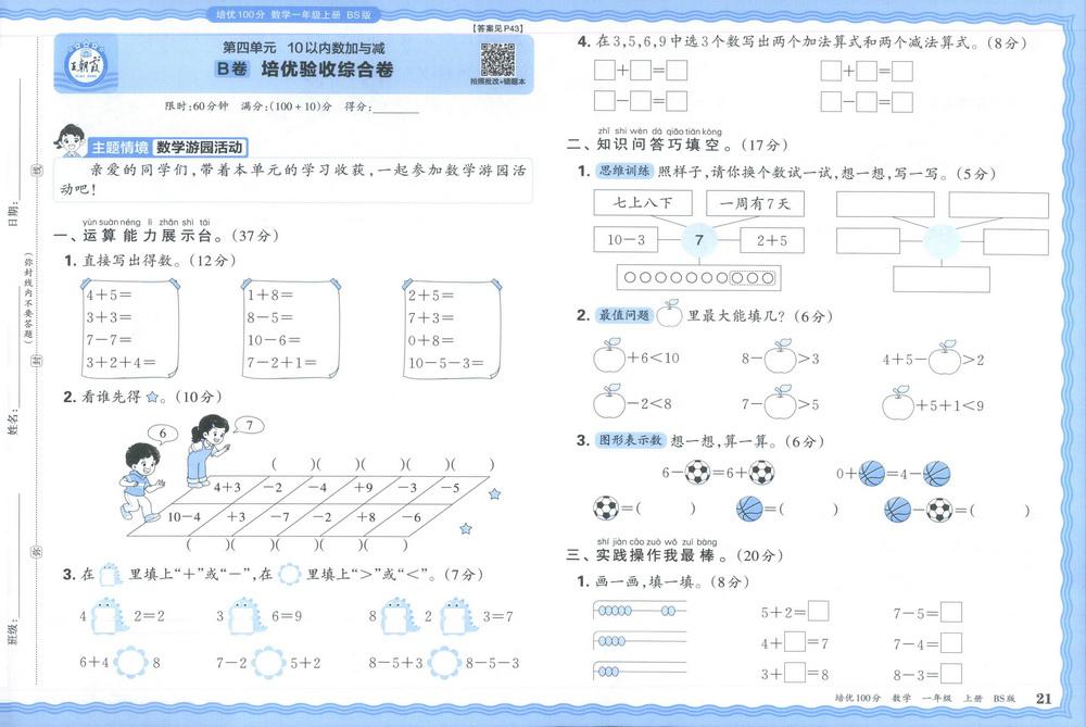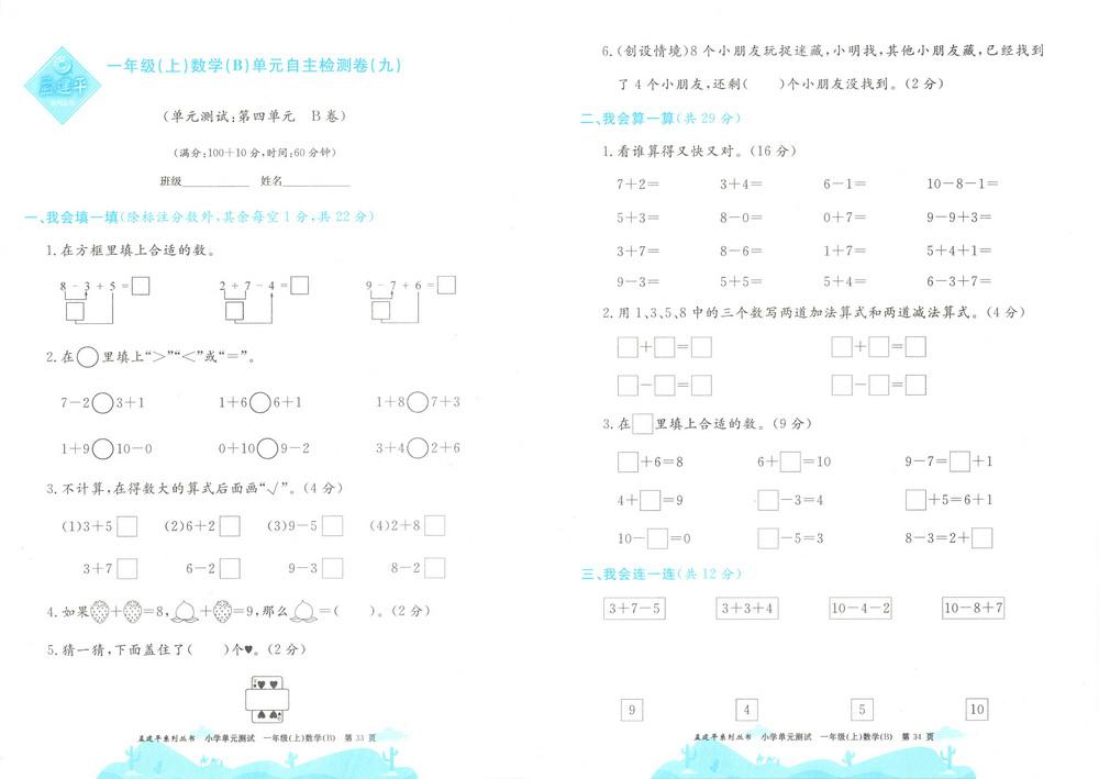 新教材北师版一年级数学上册第五单元测试卷十video