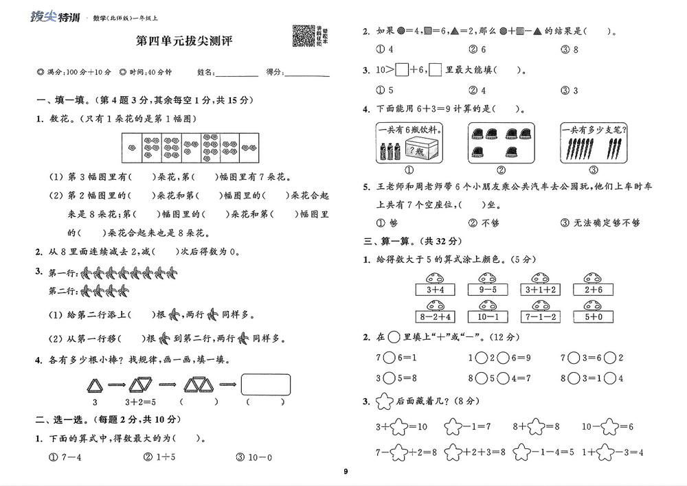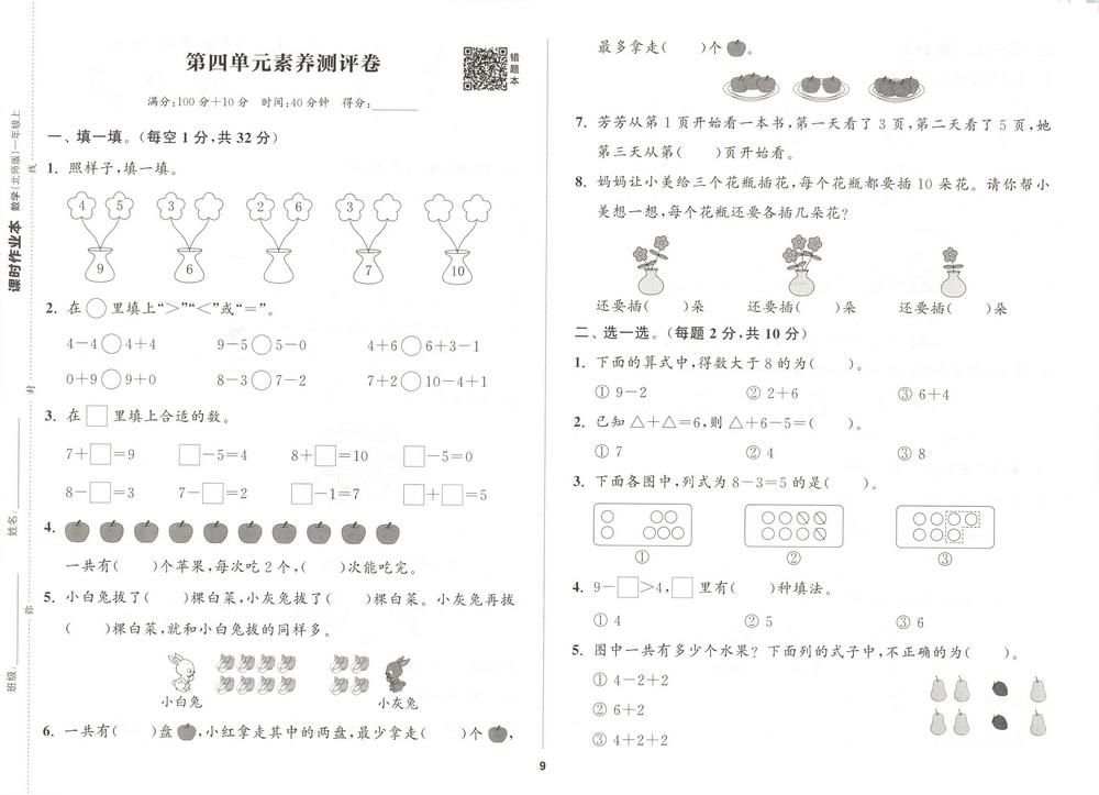 新教材北师版一年级数学上册第五单元测试卷九video