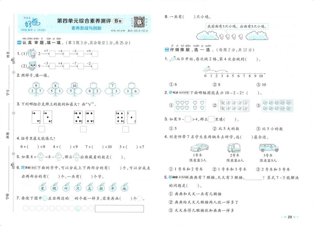新教材北师版一年级数学上册期中测试卷二十三video
