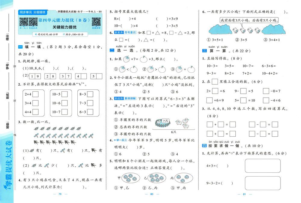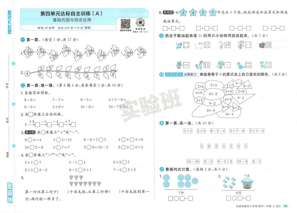 新教材北师版一年级数学上册第四单元测试卷六video