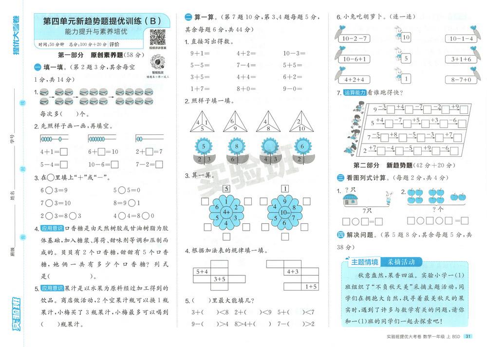 新教材北师版一年级数学上册期中测试卷二十四video