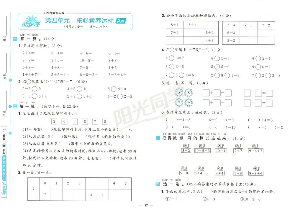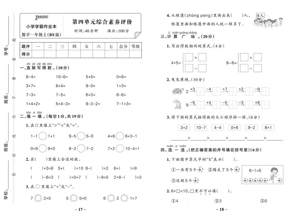 新教材北师版一年级数学上册第四单元测试卷一video