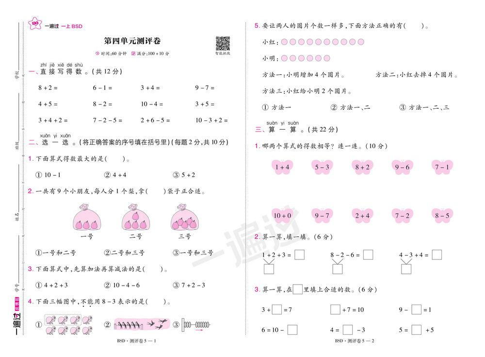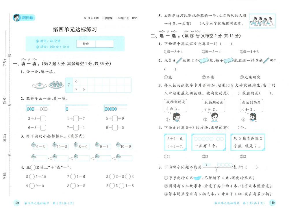 新教材北师版一年级数学上册第四单元测试卷五video