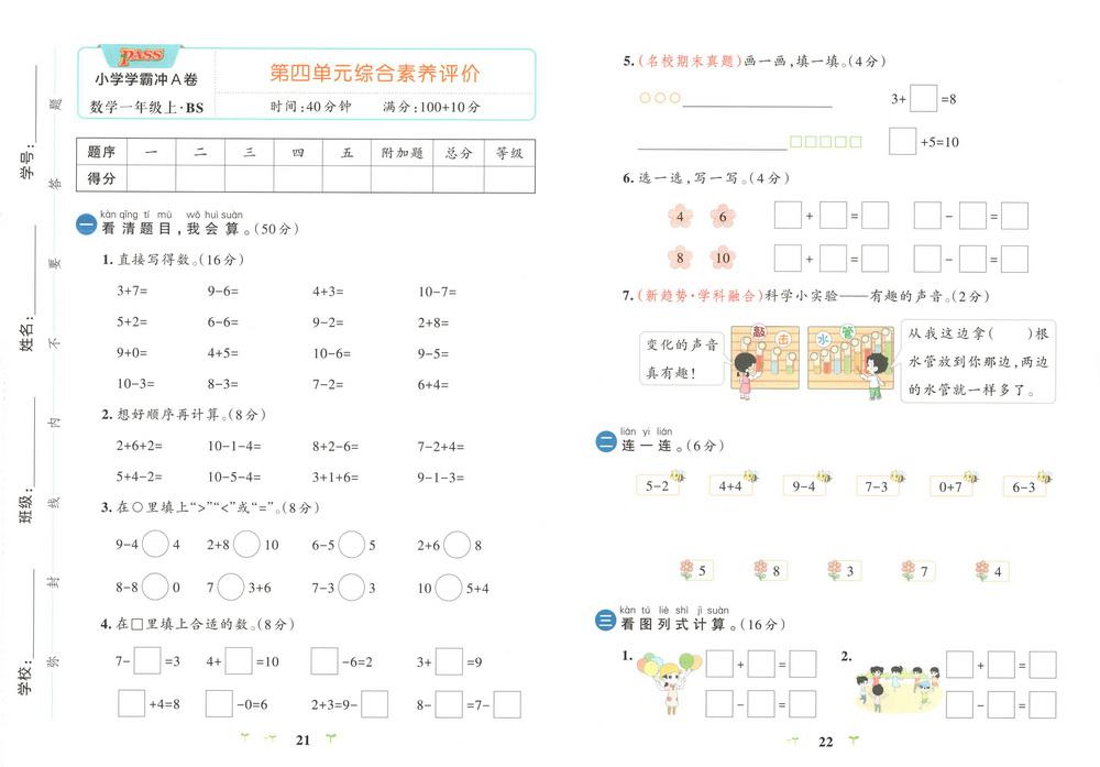 新教材北师版一年级数学上册期中测试卷二十二video