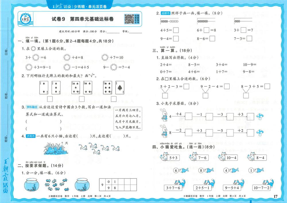 新教材北师版一年级数学上册第四单元测试卷四video