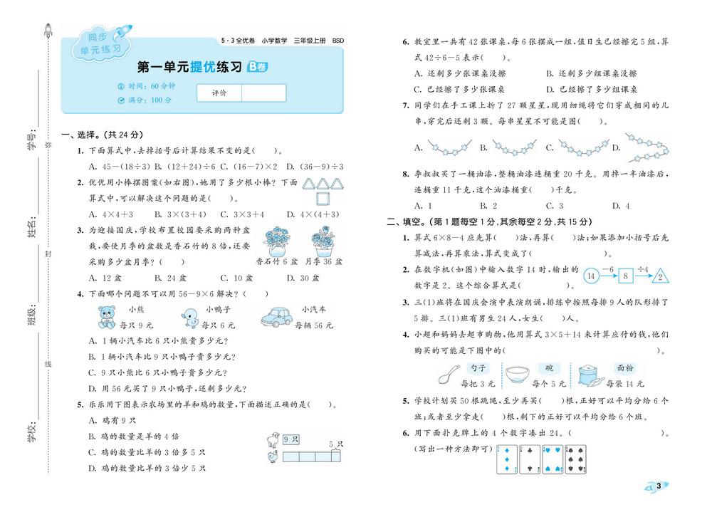 新教材北师版三年级数学上学期第一单元测试卷十九