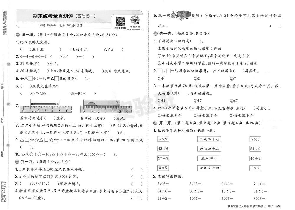 新教材人教版二年级数学上册期末测试卷二十九
