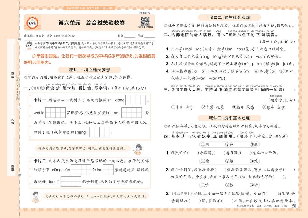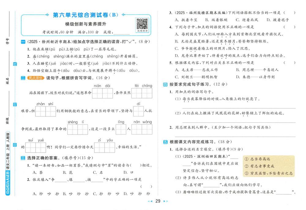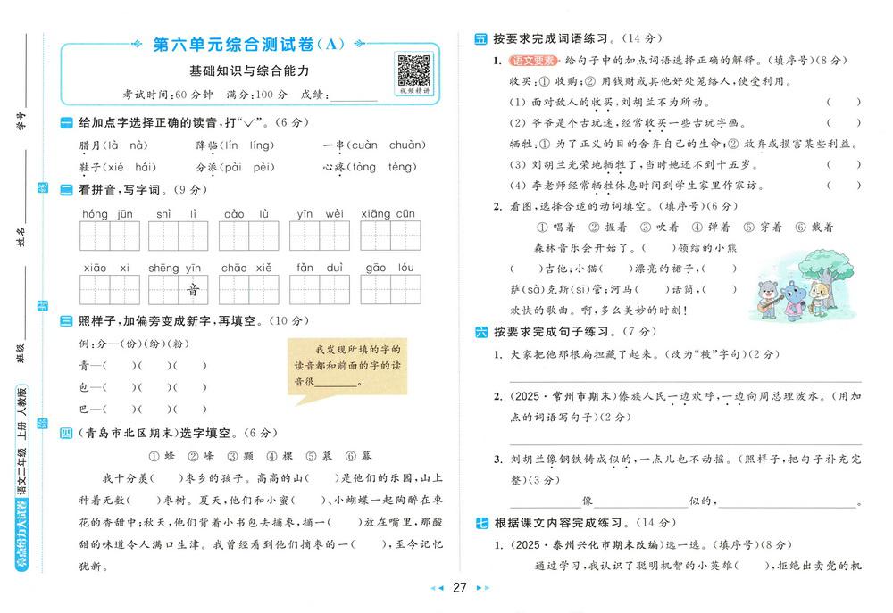 新教材人教版二年级上册语文第五单元测试卷二十五video