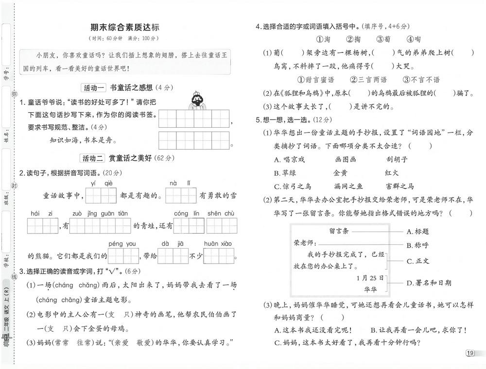 新教材人教版二年级上册语文第八单元测试卷十九video