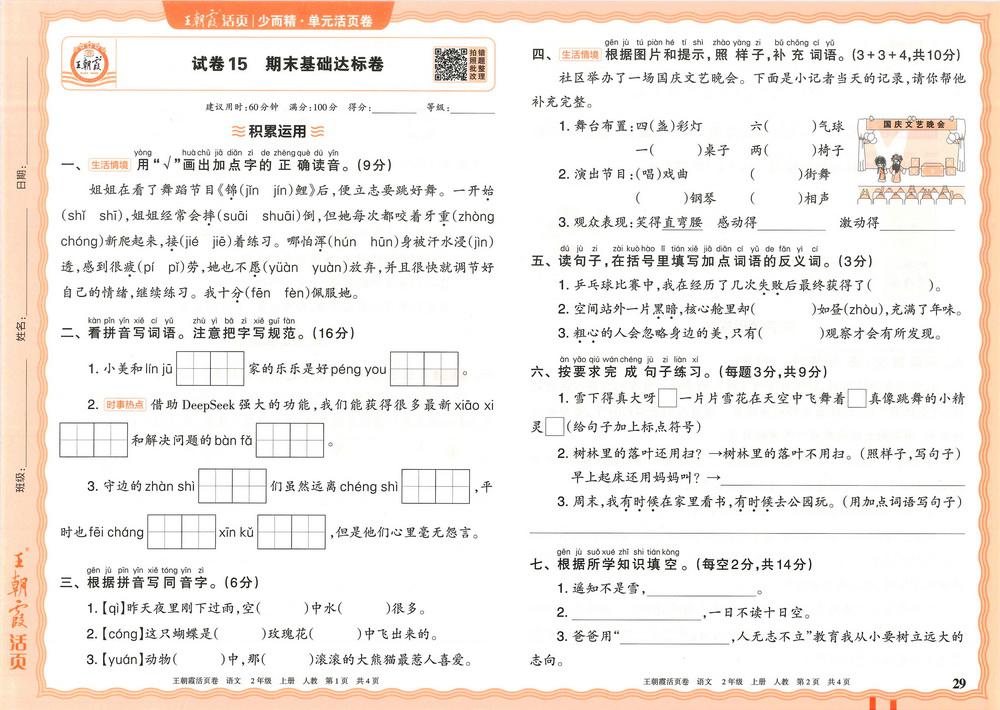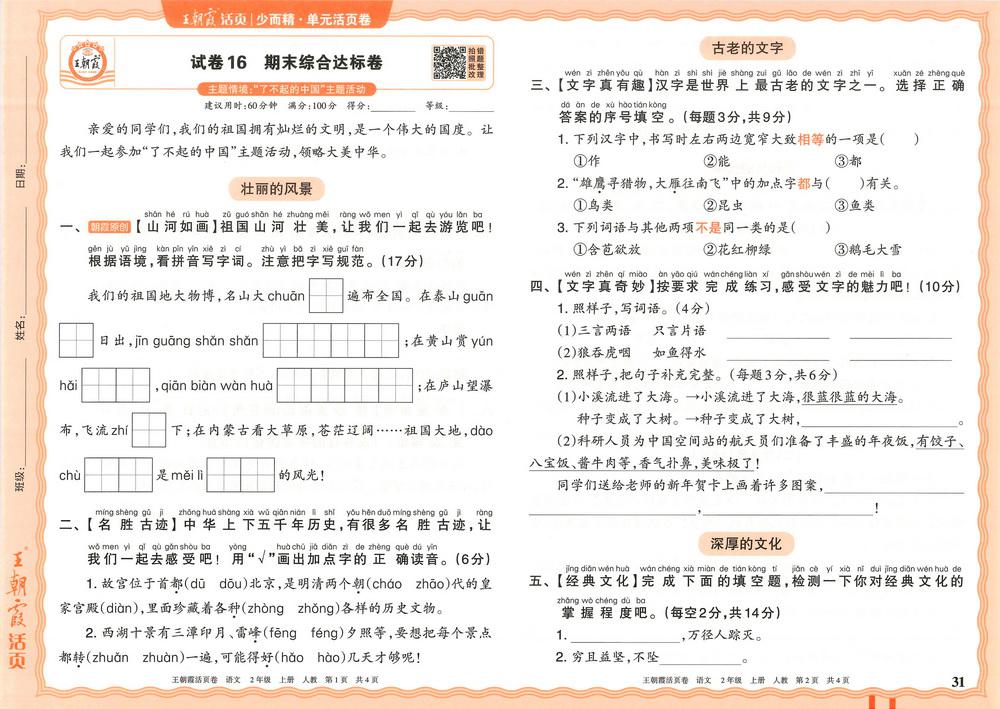 新教材人教版二年级上册语文第八单元测试卷二十八video