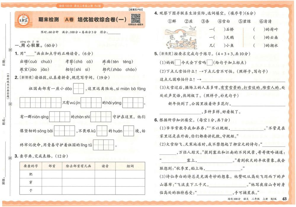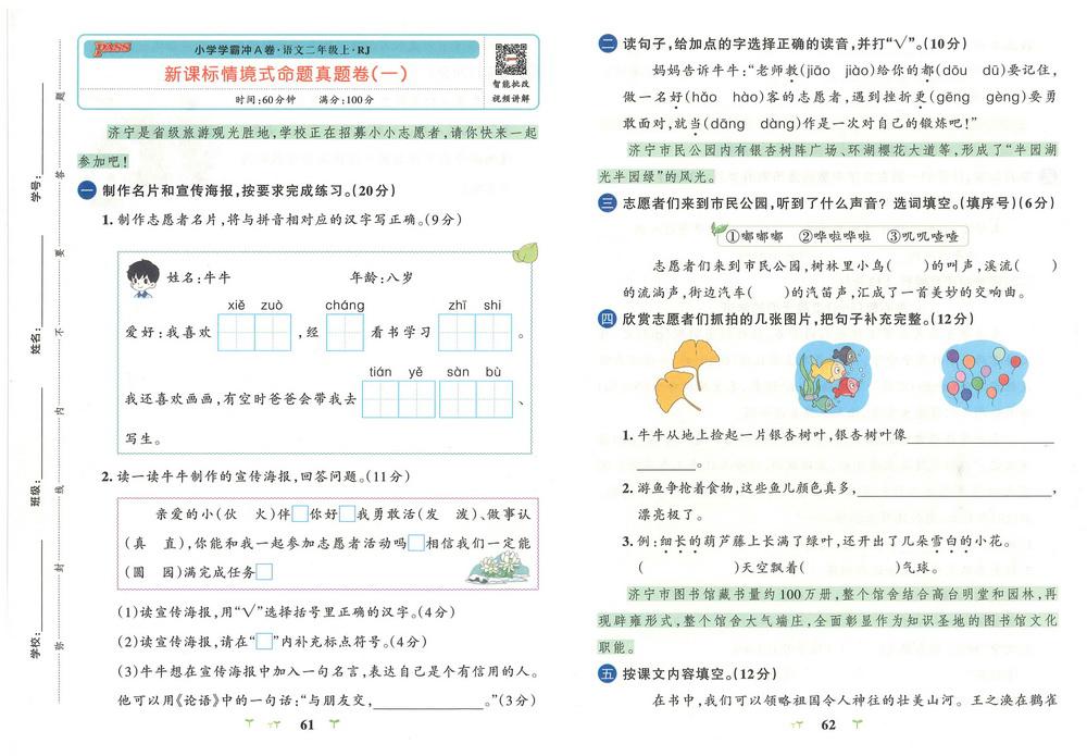 新教材人教版二年级上册语文第八单元测试卷二十三video