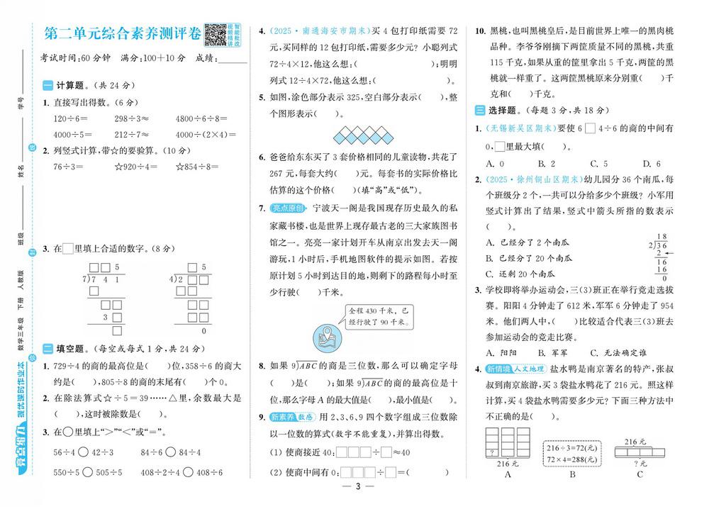 三年级 - 数学下试卷