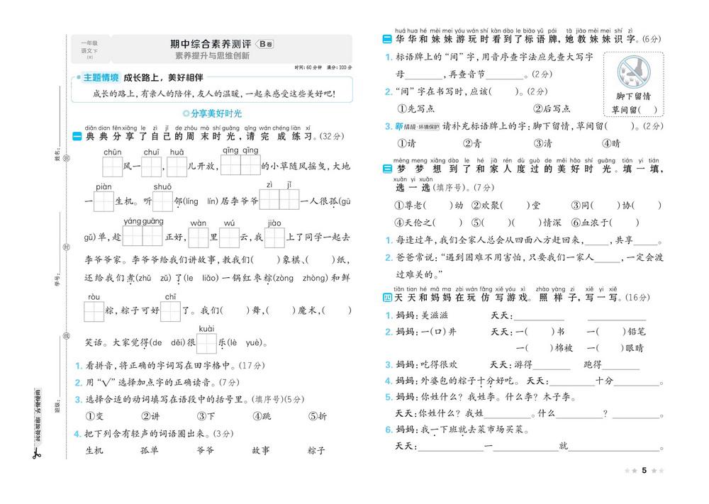 一年级 - 语文下试卷