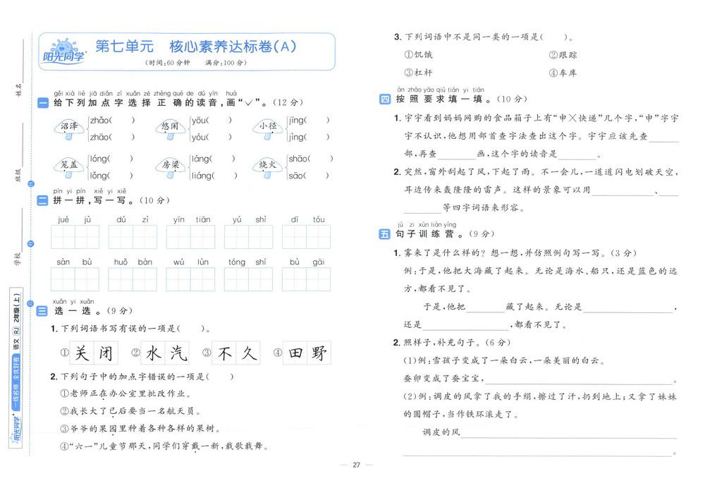 二年级 - 语文上试卷