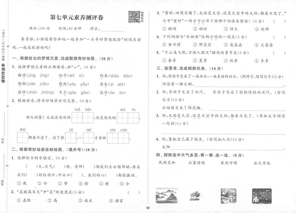 新教材人教版二年级上册语文第七单元测试卷二十一