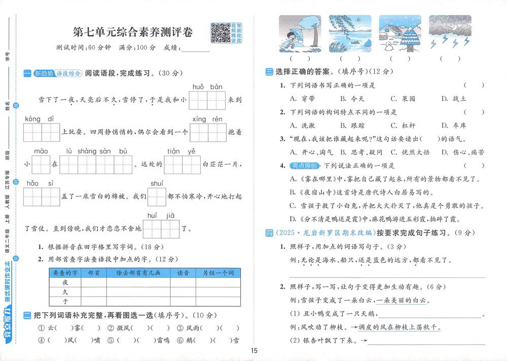 新教材人教版二年级上册语文第七单元测试卷二十二