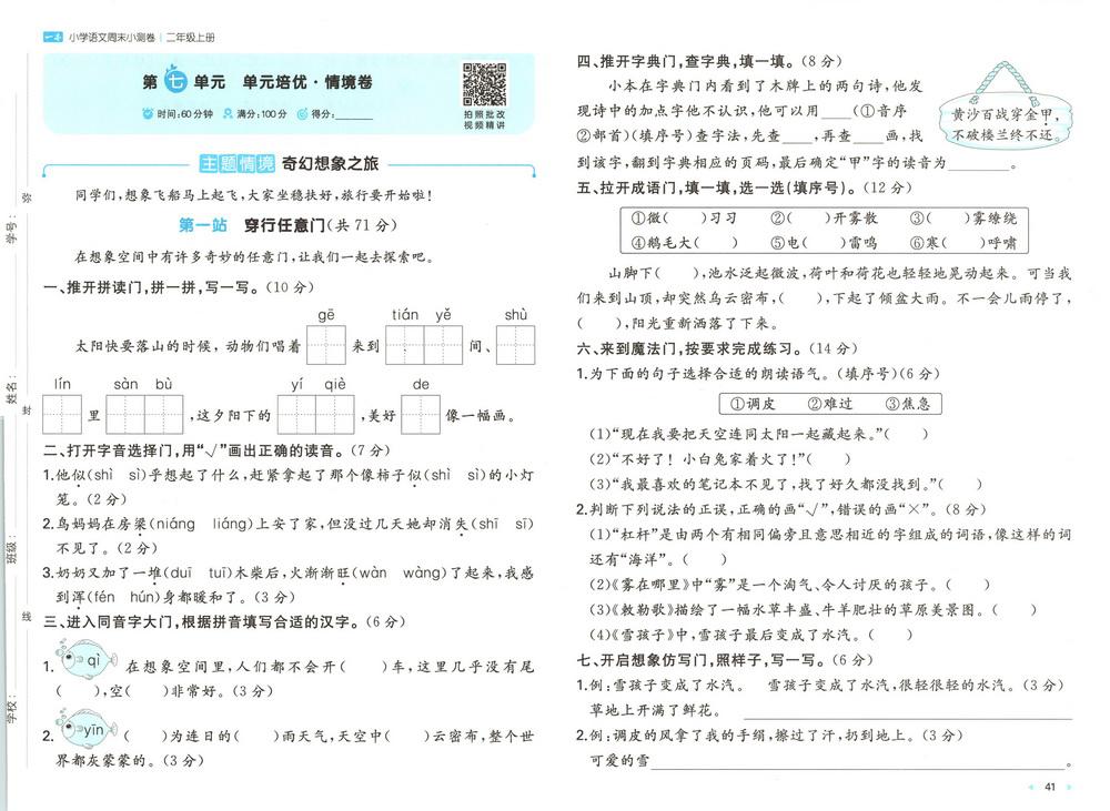 新教材人教版二年级上册语文第七单元测试卷二十四