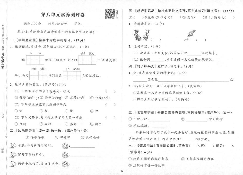 新教材人教版二年级上册语文第八单元测试卷二十二