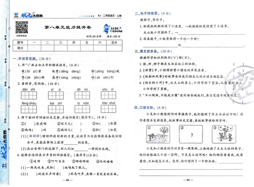 新教材人教版二年级上册语文第八单元测试卷二十五