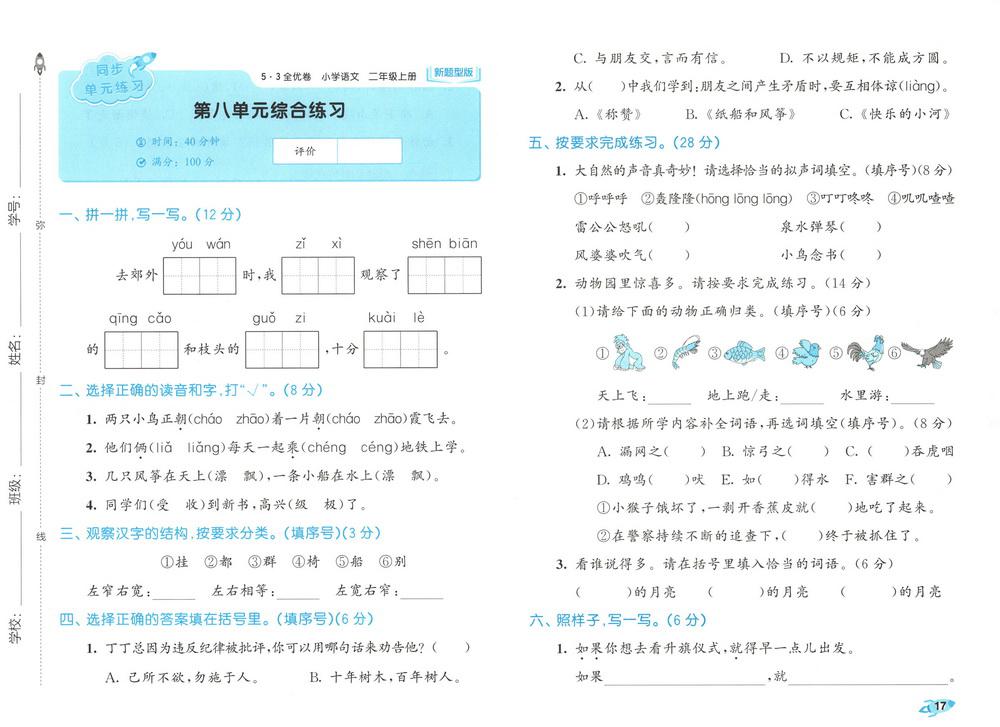 新教材人教版二年级上册语文第八单元测试卷二十八