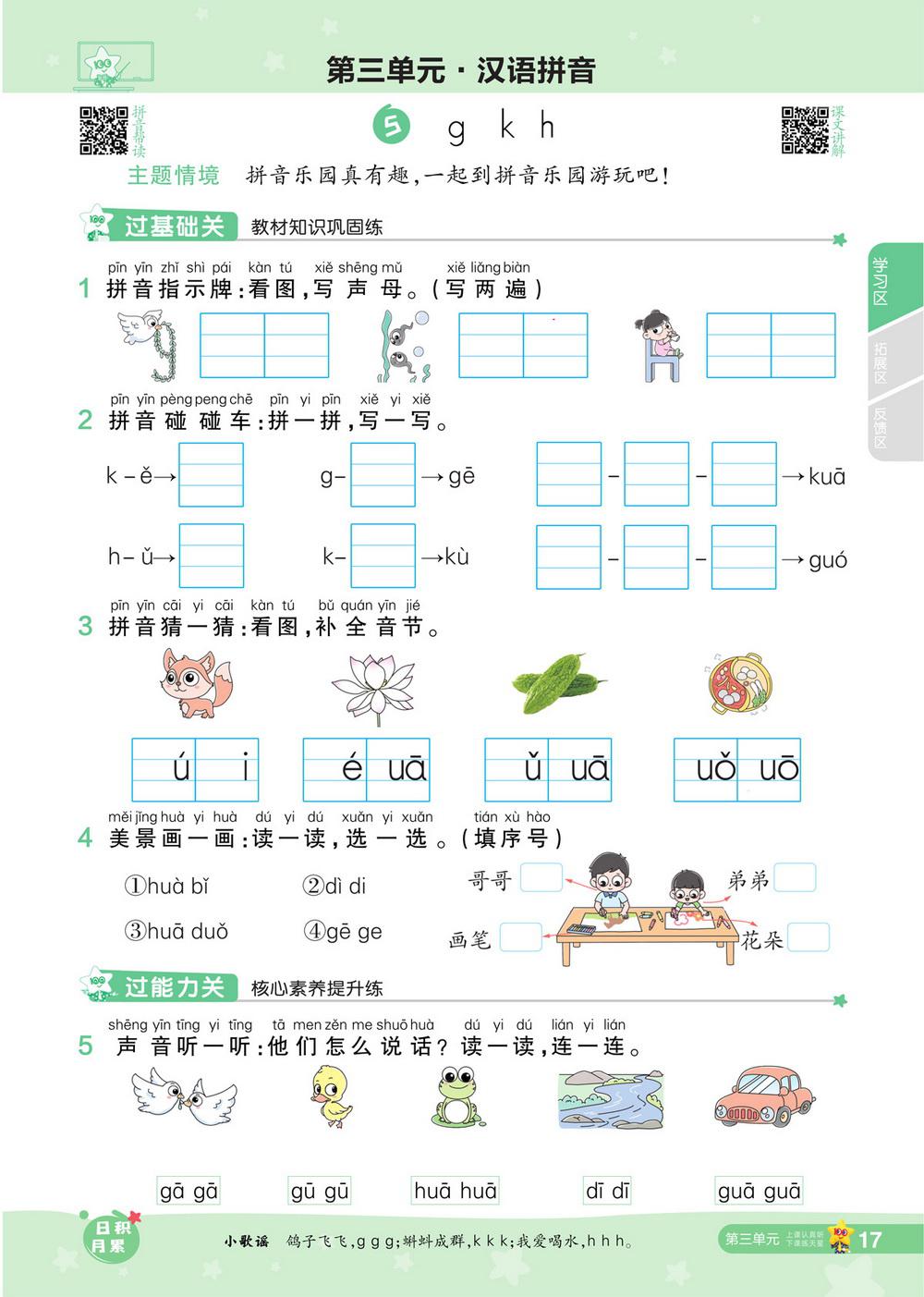 2025秋版《一遍过》一年级语文上册第三单元练习册下载