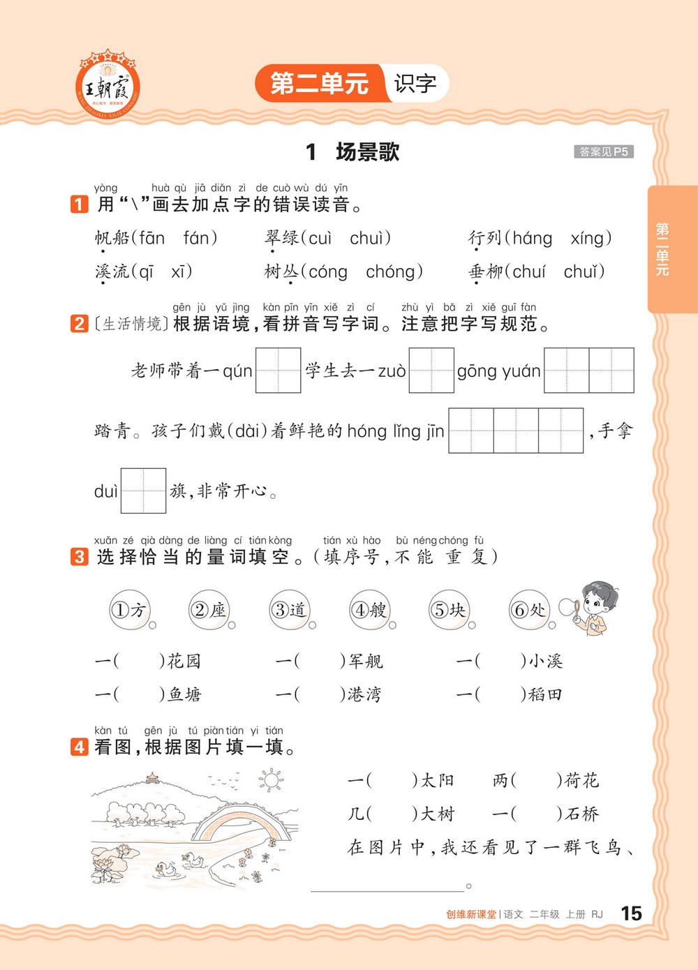 2025秋《创维新课堂》二年级语文上册第二单元练习册下载
