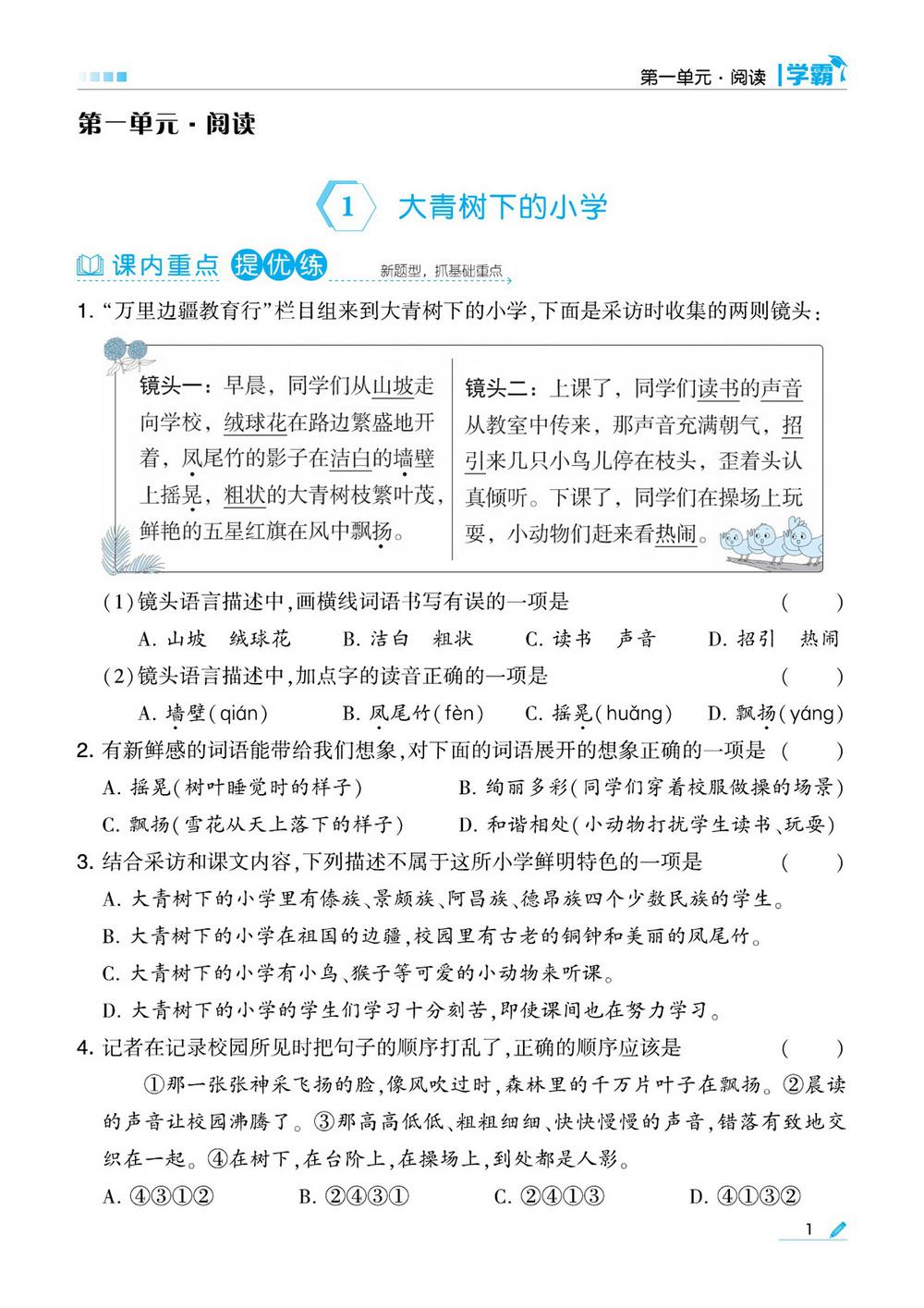 2025秋版《5星学霸》三年级语文上册第一单元练习册下载