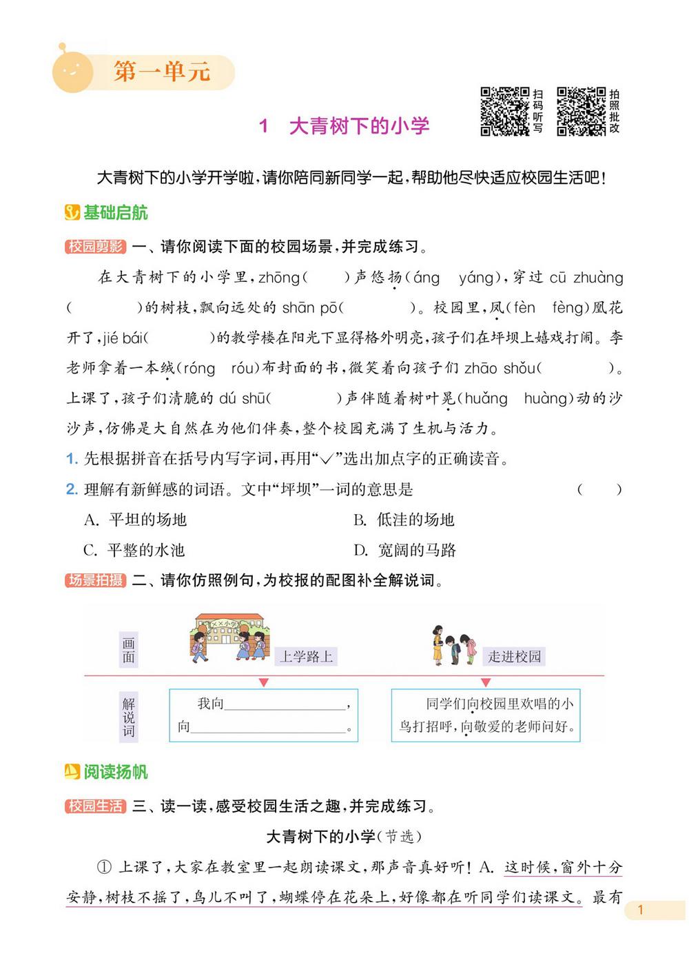2025秋版《课时作业本》三年级语文上册第一单元练习册下载