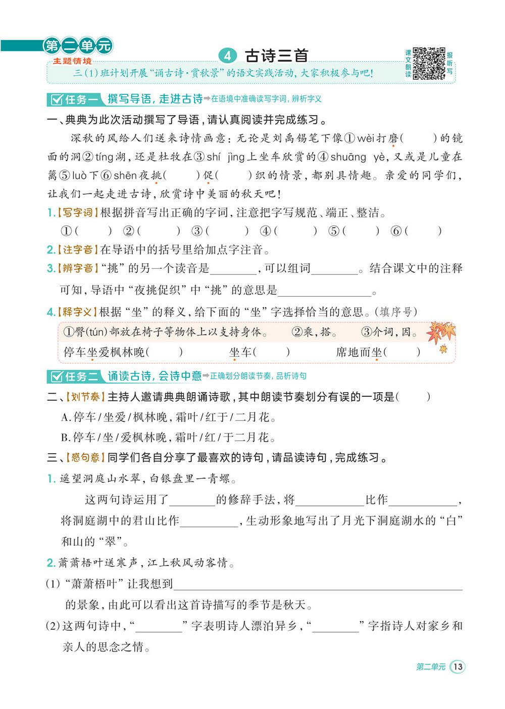 2025秋版《典中点》三年级语文上册第二单元练习册下载