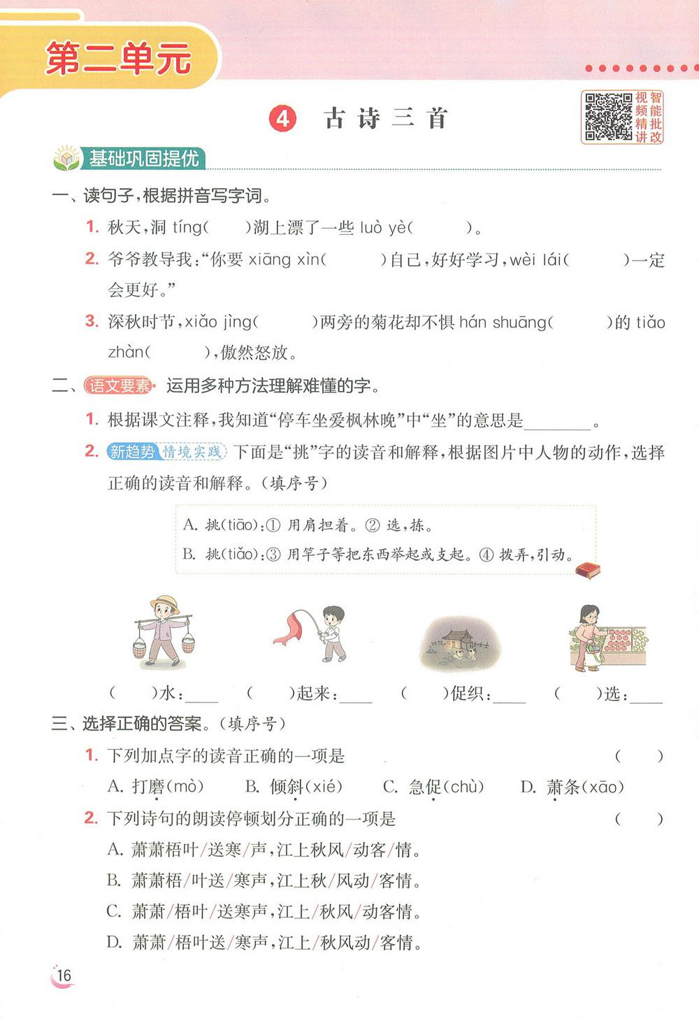 2025秋版《提优课时作业本》三年级语文上册第二单元练习册下载