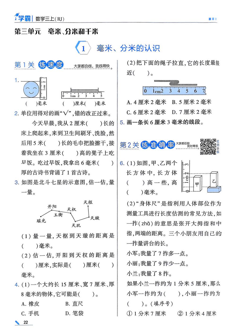 2025秋版《5星学霸》三年级数学上册第三单元练习册下载