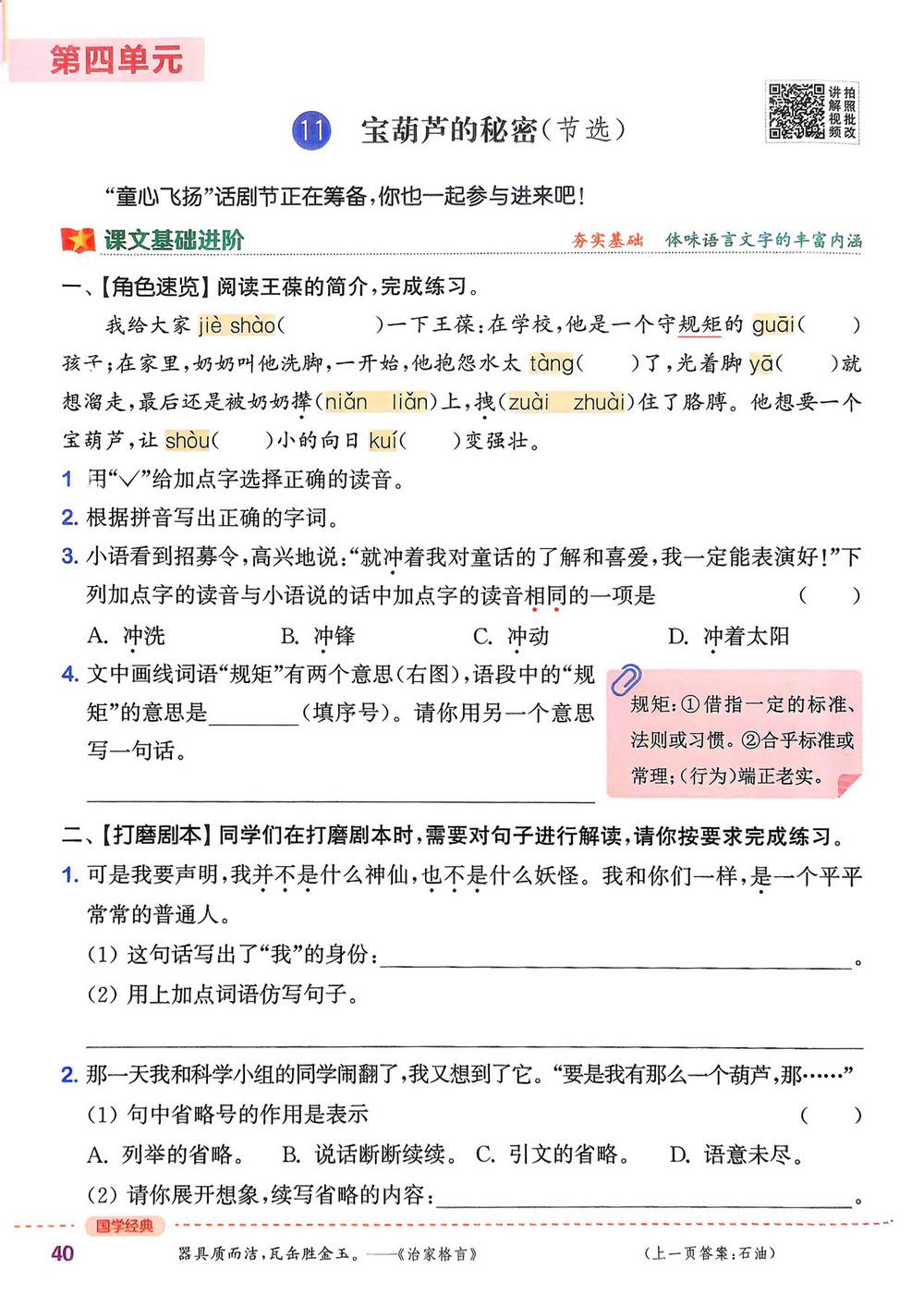 2025秋版《拔尖特训》三年级语文上册第四单元练习册下载