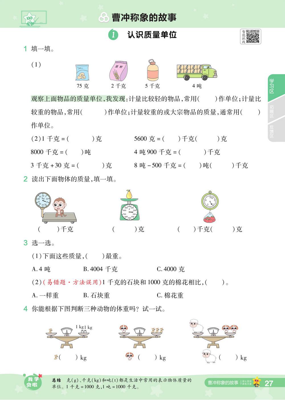 2025秋版《一遍过》三年级数学上册曹冲称象的故事练习册下载