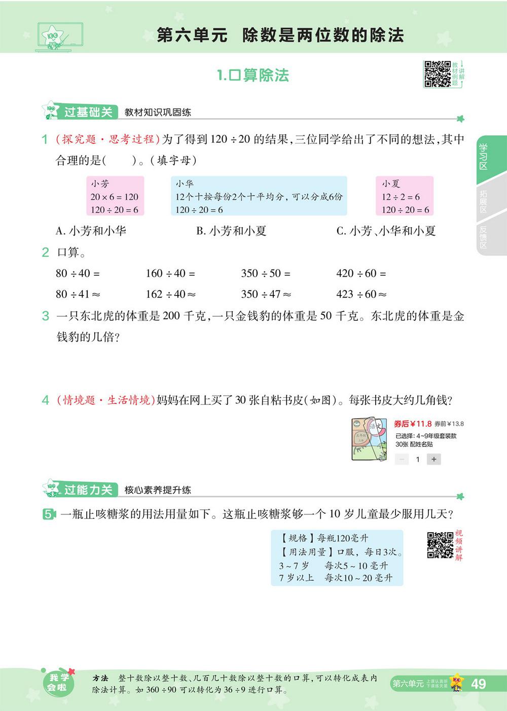 《一遍过》四年级数学上册第六单元同步练习册下载
