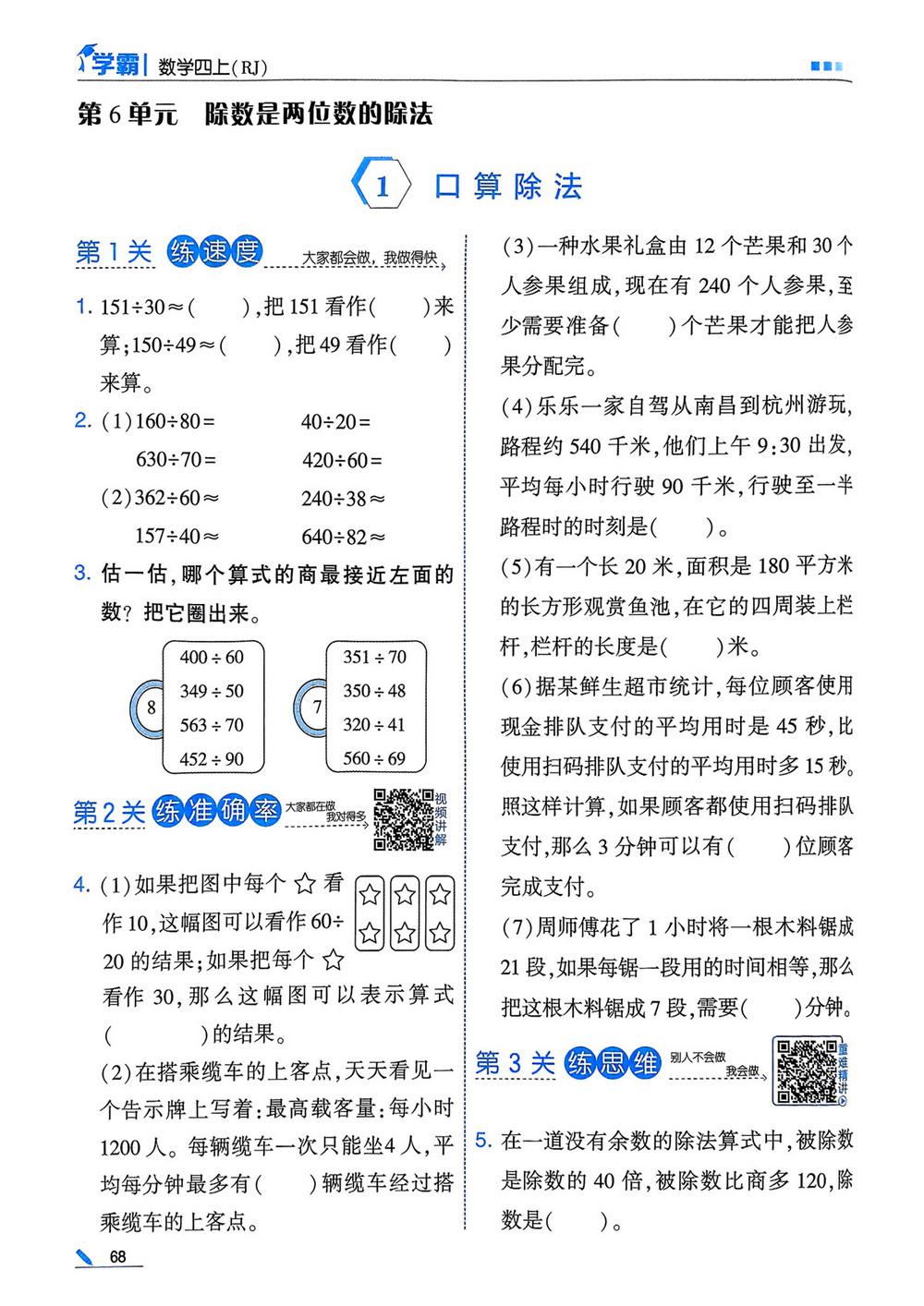 《5星学霸》四年级数学上册第六单元同步练习册下载