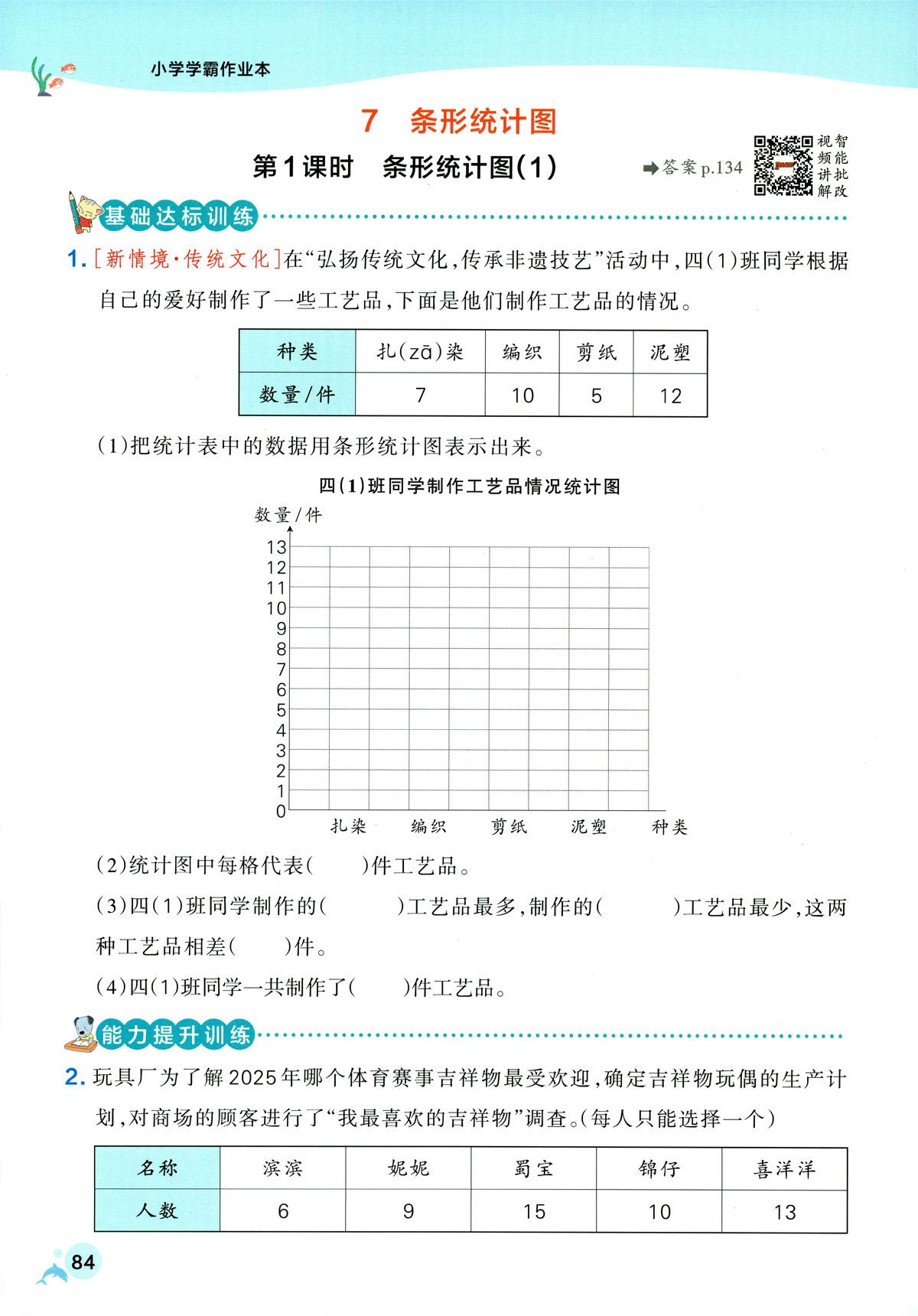《小学学霸作业本》四年级数学上册第七单元同步练习册下载