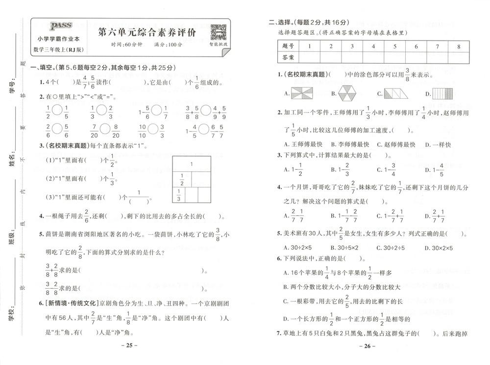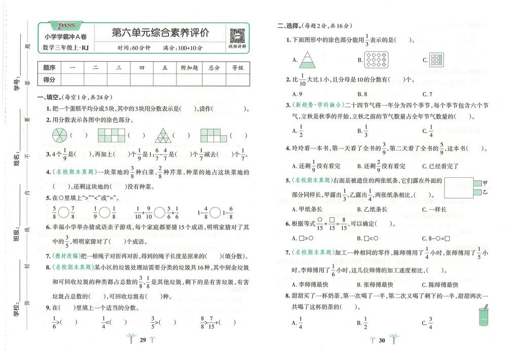 新教材人教版三年级数学上册第五单元测试卷二十四video