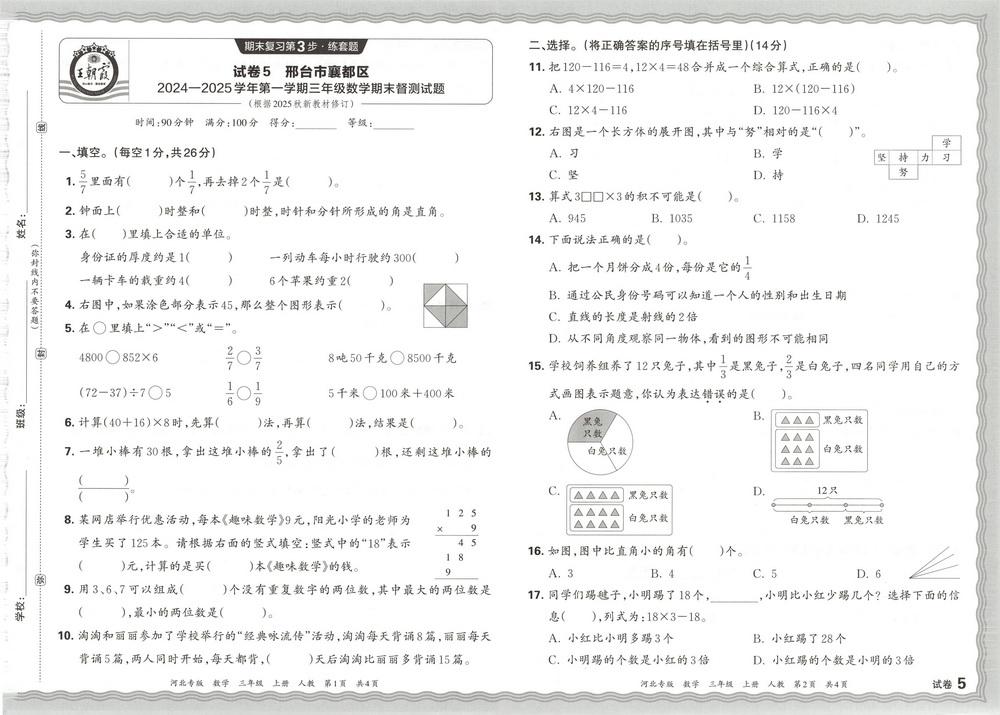 新教材人教版三年级上册数学全国省市各地期末真题试卷二十六video