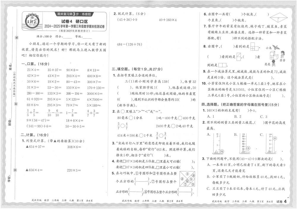 新教材人教版三年级上册数学全国省市各地期末真题试卷十八video