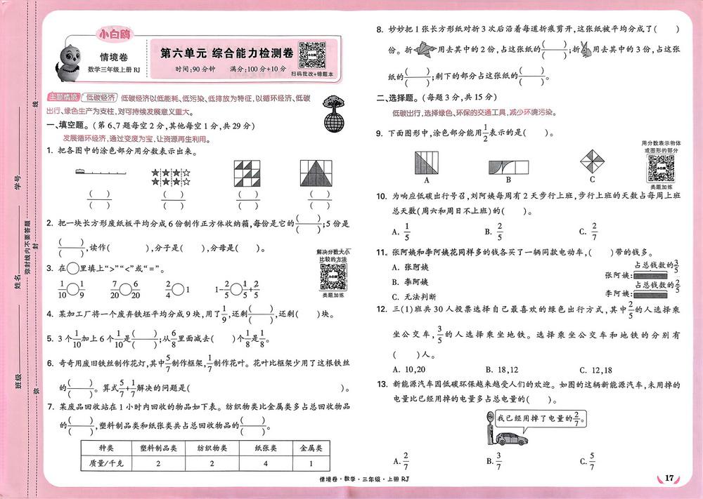 新教材人教版三年级数学上册第六单元测试卷二十五