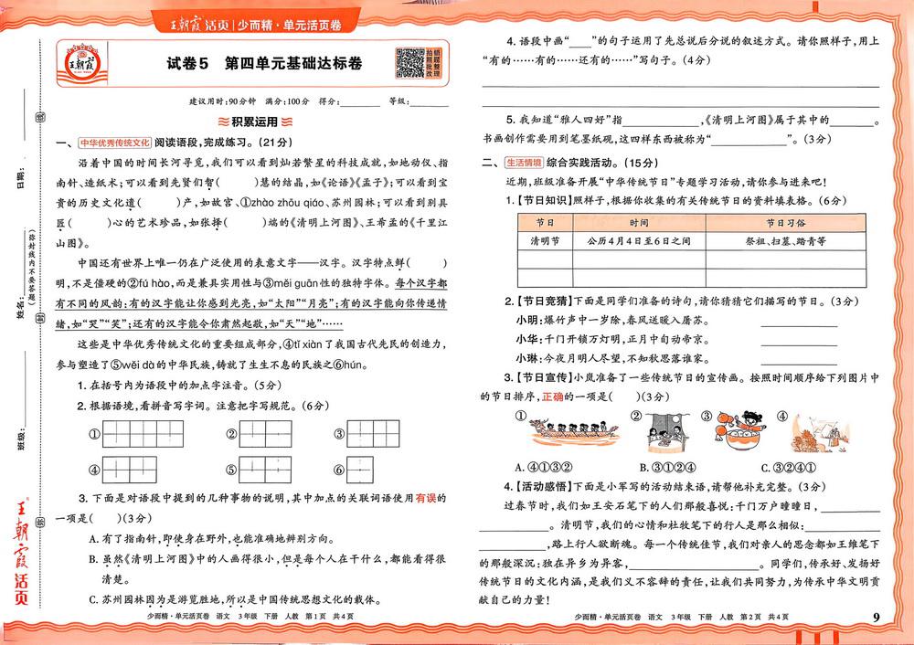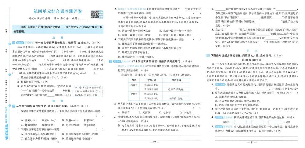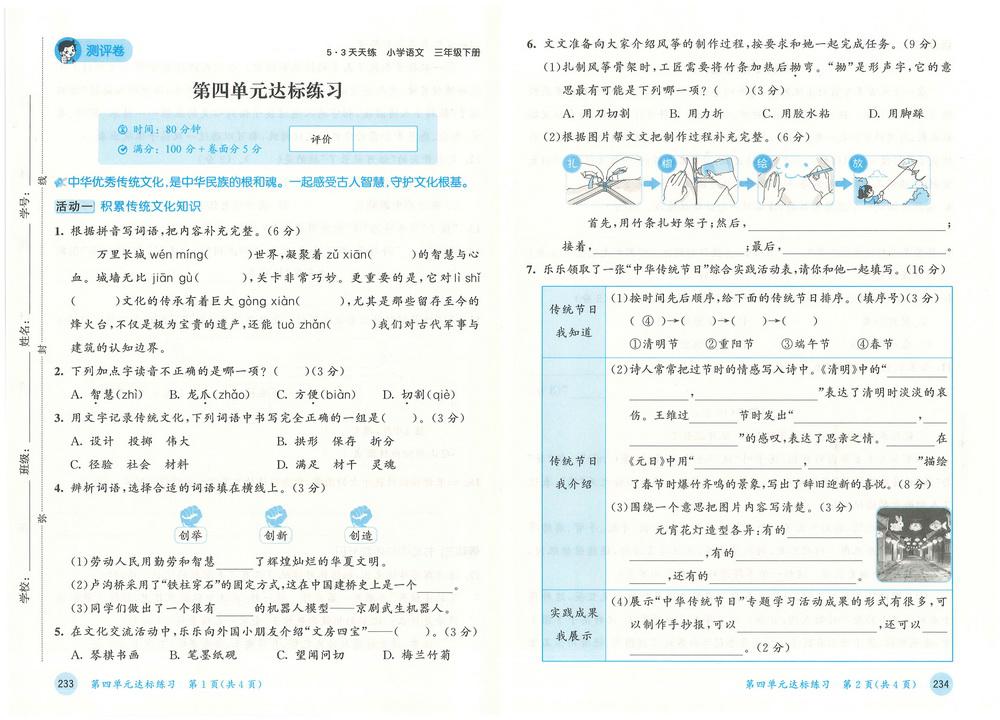 新教材人教版三年级下册语文第四单元测试卷二十video