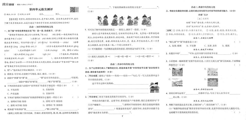 三年级下册语文第七单元试卷汇总video