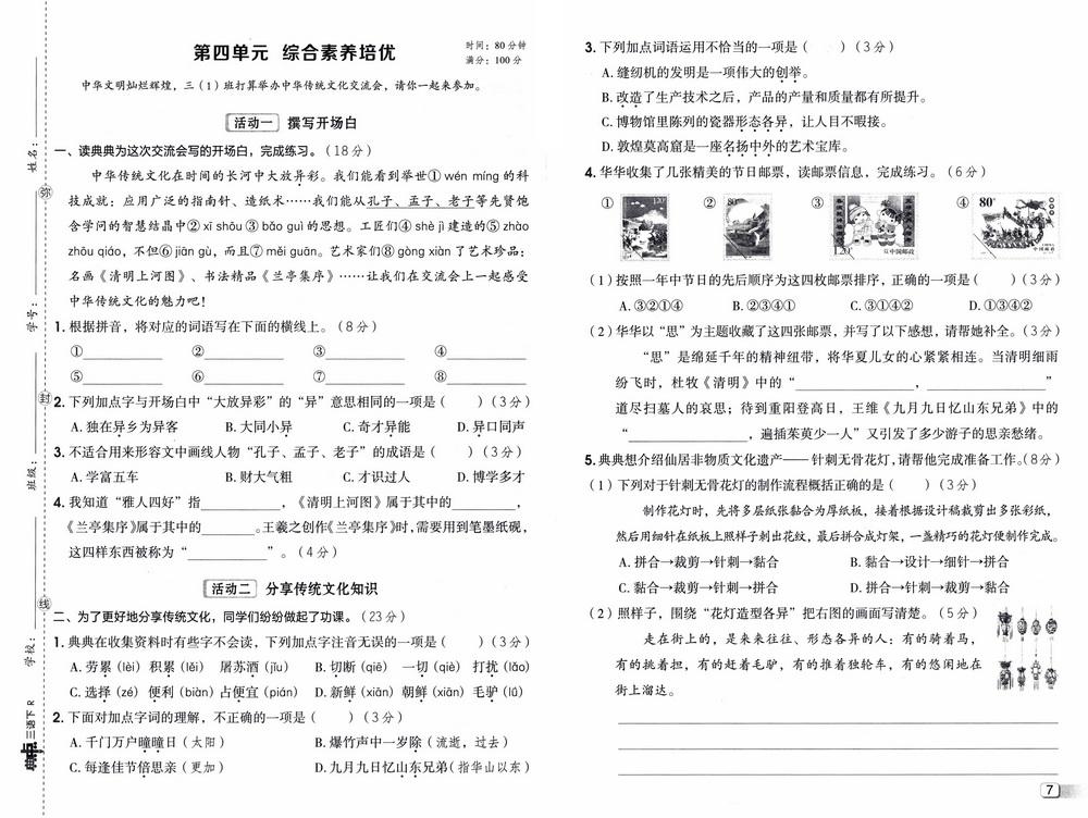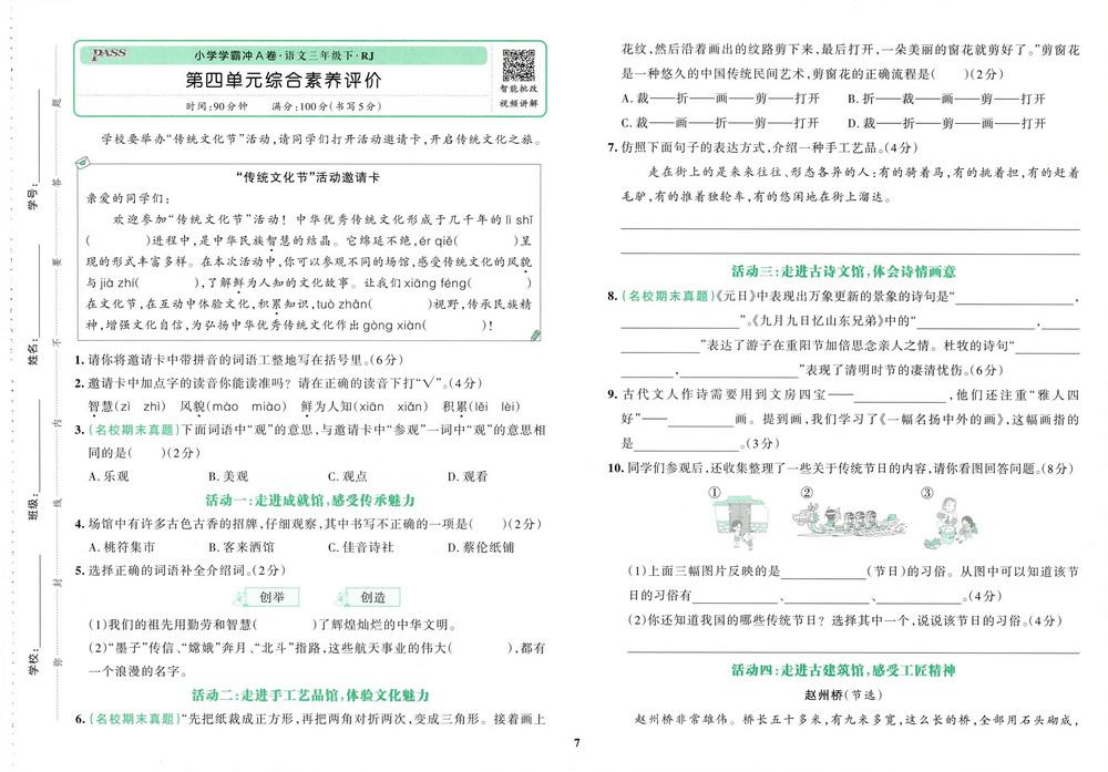 新教材人教版三年级下册语文第四单元测试卷七video
