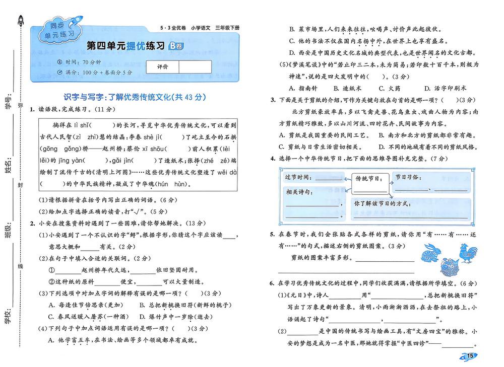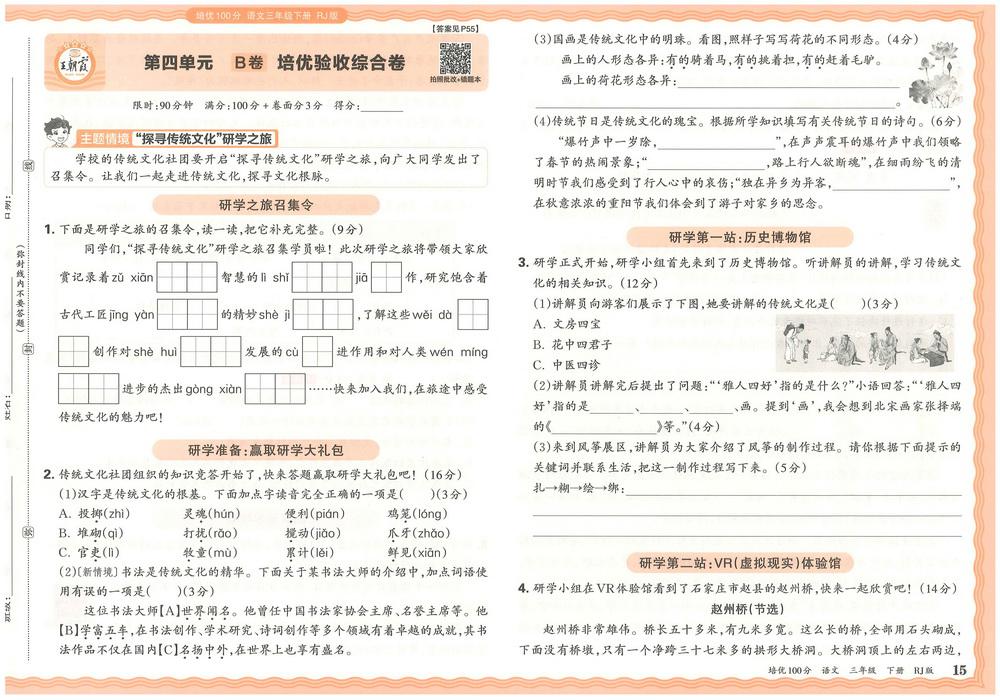 新教材人教版三年级下册语文第三单元测试卷十五video
