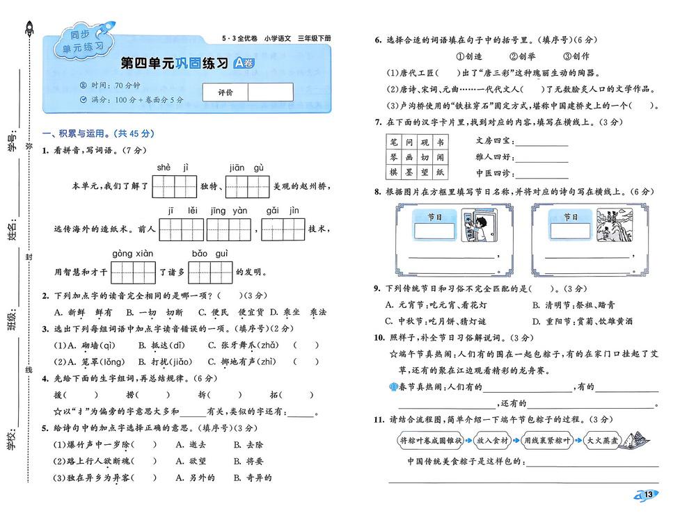 三年级下册语文第五单元试卷汇总video