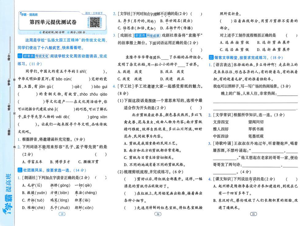 新教材人教版三年级下册语文第四单元测试卷四video
