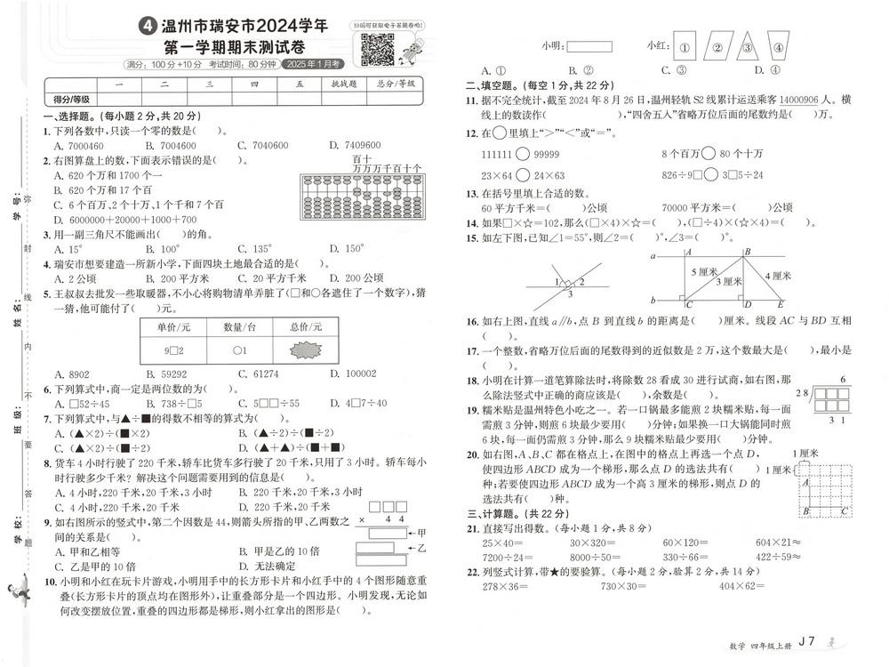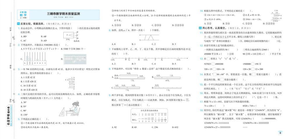 四年级 - 数学上试卷大全