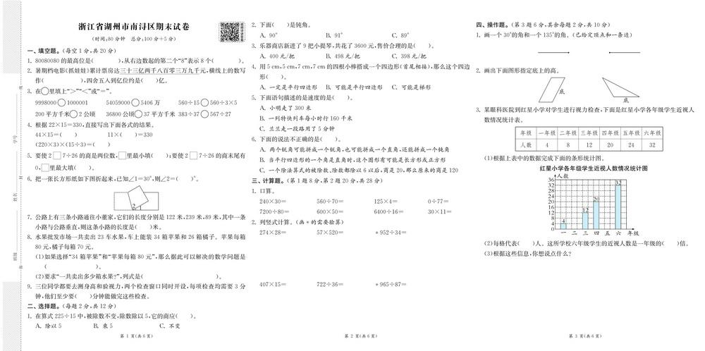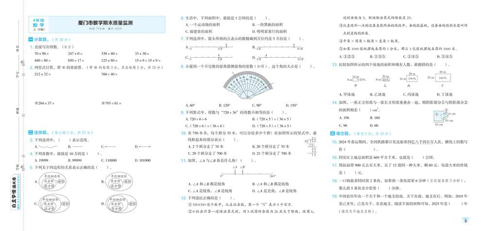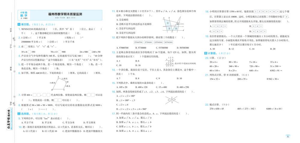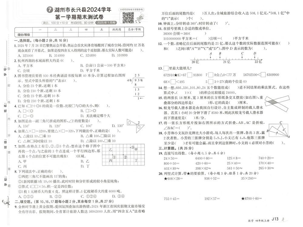 人教版四年级上册数学全国省市各地期末真题试卷二十六video