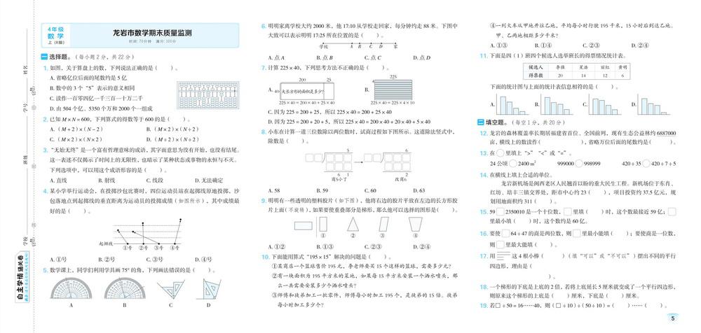 人教版四年级上册数学全国省市各地期末真题试卷二十二video