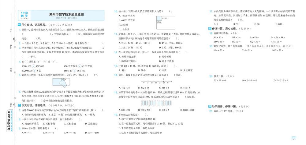 人教版四年级上册数学全国省市各地期末真题试卷二十一video